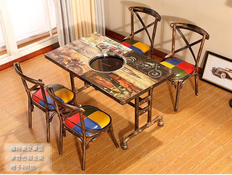 梦达电磁炉火锅桌椅,一款产品,十几种款式,总有一种能够满足您的需求。本款桌椅采用油蜡皮椅面,实木桌面,桌椅支架则选用钢材制作,稳固耐用,时尚复古。