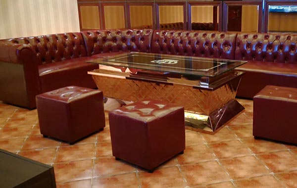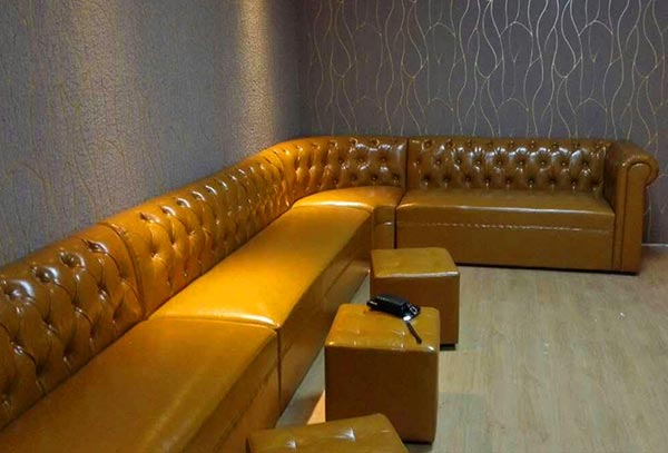 这款ktv包厢沙发的外观设计饱满大气,深扣工艺让整个沙发外观看起来大气优雅,沙发以欧式拉扣圆扶手设计,质感舒适饱满。卡座沙发的靠背采用10公分高密度加厚海绵填充,镶阙三排深扣点缀,做工精细,精致的走线,整齐牢固,不易松散,更加耐磨耐用。Ktv卡座的面料采用加厚的油蜡皮,紧致耐磨,易清洁,很适合做为包厢和KTV沙发之选,简雅又实用。
