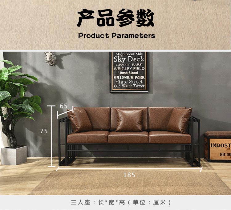 本款酒吧卡座沙发适用于酒吧大厅,采用的是合适酒吧环境的美式LOFT复古风设计。咖啡色的主色调设计加上质量合格皮革带来的质感,成为这款酒吧大厅沙发的一大亮点!